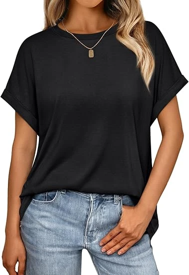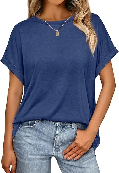 Women Crewneck Loose Fit Tunic Tops Short