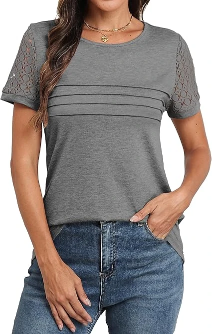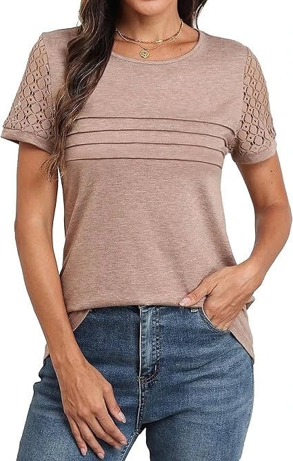 Women's Short Sleeve Shirts Lace