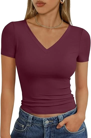 Womens Basic V Neck Short Sleeve T Shirts